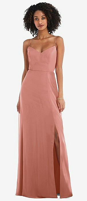 Spaghetti Strap Draped Skirt Gown with Front Slit in desert rose