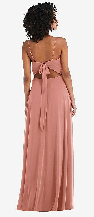 Tie-Back Cutout Maxi Dress with Front Slit in desert rose