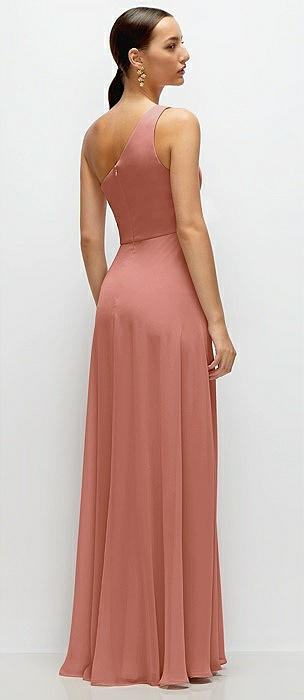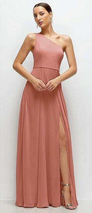 Chiffon One-Shoulder Maxi Dress with Circle Skirt in desert rose