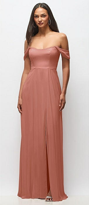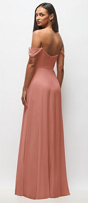 Off-the-Shoulder Corset Stretch Satin Mermaid Dress with Slight Train in desert rose