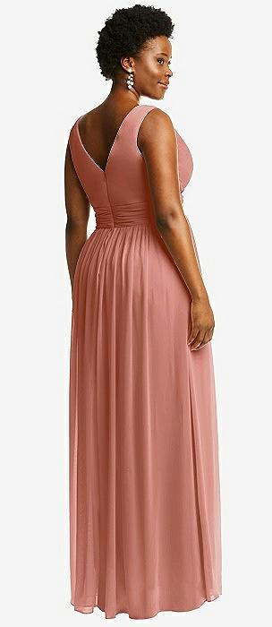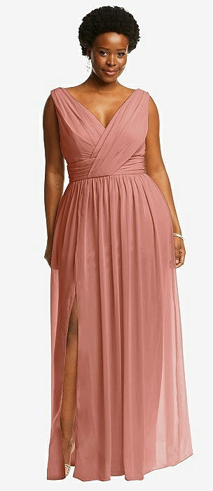Sleeveless Draped Chiffon Maxi Dress with Front Slit in desert rose