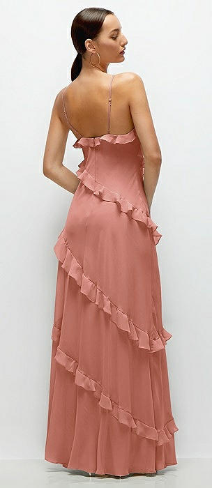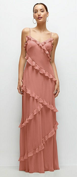 Asymmetrical Ruffle Chiffon Bias Slip Maxi Dress in desert rose