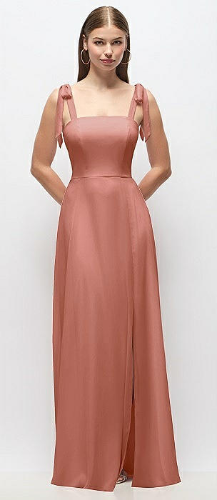Square-Neck Satin A-line Maxi Dress with Front Slit in desert rose