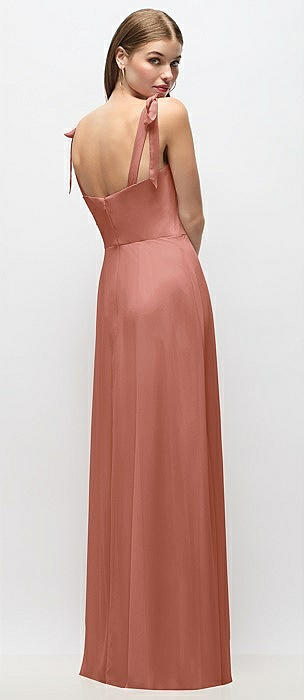 Tie-Shoulder Chiffon Maxi Dress with Front Slit in desert rose