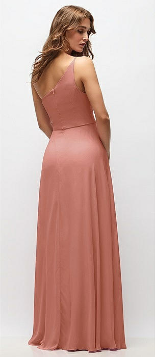 One-Shoulder Chiffon Maxi Dress with Shirred Front Slit in desert rose