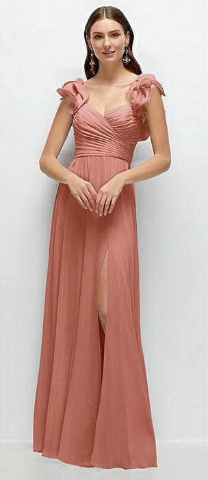 Dramatic Ruffle Edge Strap Chiffon Maxi Dress in desert rose