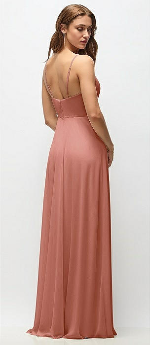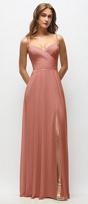 Wrap Bodice Chiffon Maxi Dress with Adjustable Spaghetti Straps in desert rose