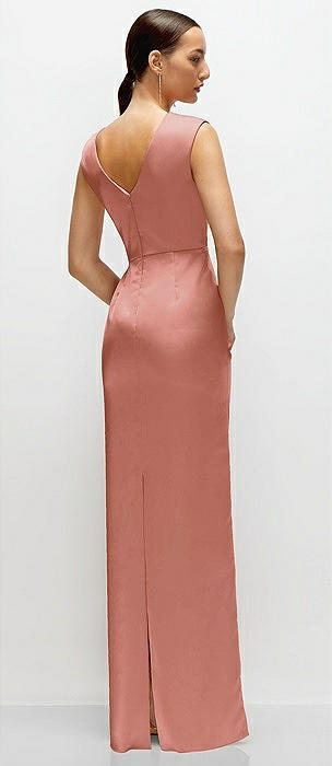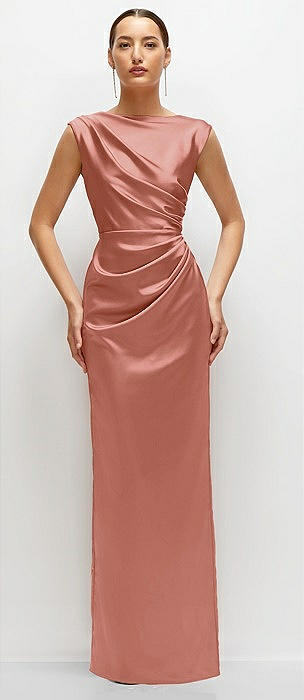 High Cowl Neck Open-Back Stretch Satin Bias Maxi Dress in desert rose