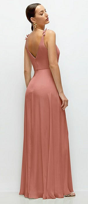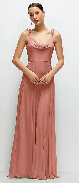 Cowl Neck Chiffon Maxi Dress with Hand-Worked Petal Straps in desert rose