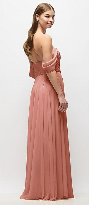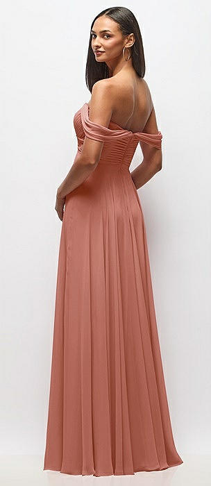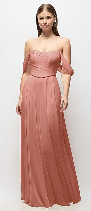 Dessy Desert Rose Off-The-Shoulder Bridesmaid Dresses