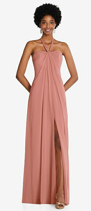 Draped Chiffon Grecian Column Gown with Convertible Straps