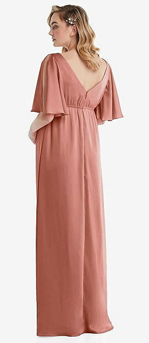 Flutter Bell Sleeve Empire Maternity Dress in desert rose