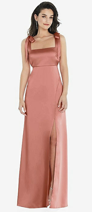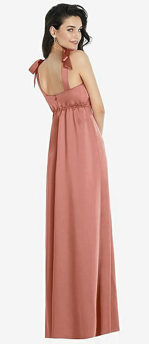 Flat Tie-Shoulder Empire Waist Maxi Dress with Front Slit in desert rose