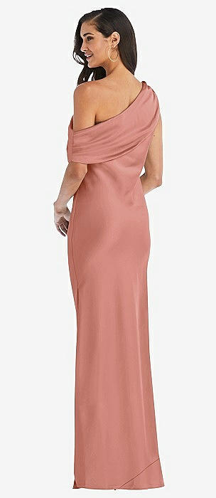 Draped One-Shoulder Convertible Maxi Slip Dress in desert rose