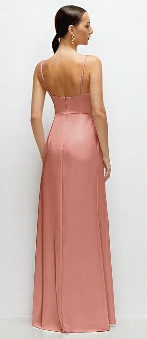 Cowl Neck Satin Maxi Dress with Adjustable Spaghetti Straps in desert rose