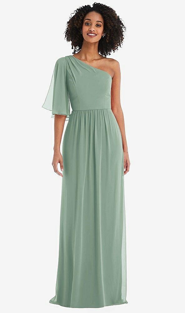 One-Shoulder Bell Sleeve Chiffon Maxi Dress in Seagrass