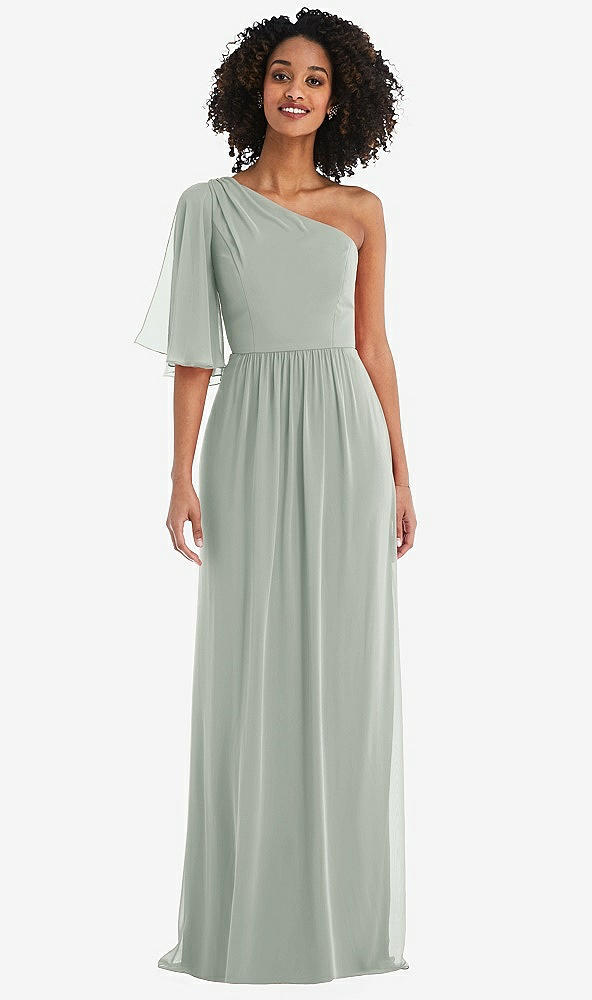 One-Shoulder Bell Sleeve Chiffon Maxi Dress in Willow Green