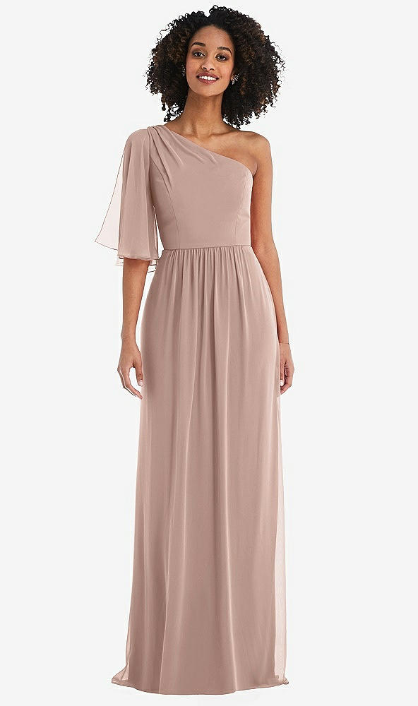 One-Shoulder Bell Sleeve Chiffon Maxi Dress in Neu Nude