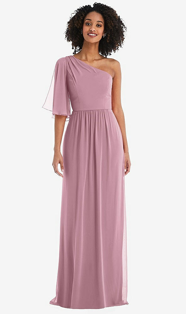 One-Shoulder Bell Sleeve Chiffon Maxi Dress in Dusty Pink