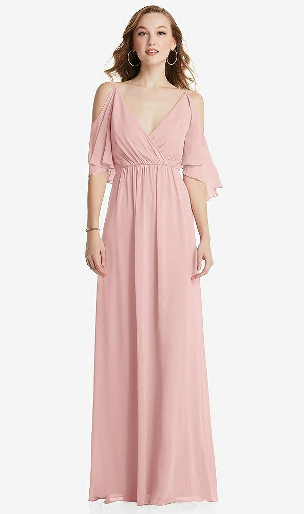 Convertible Cold-Shoulder Draped Wrap Maxi Dress in Rose