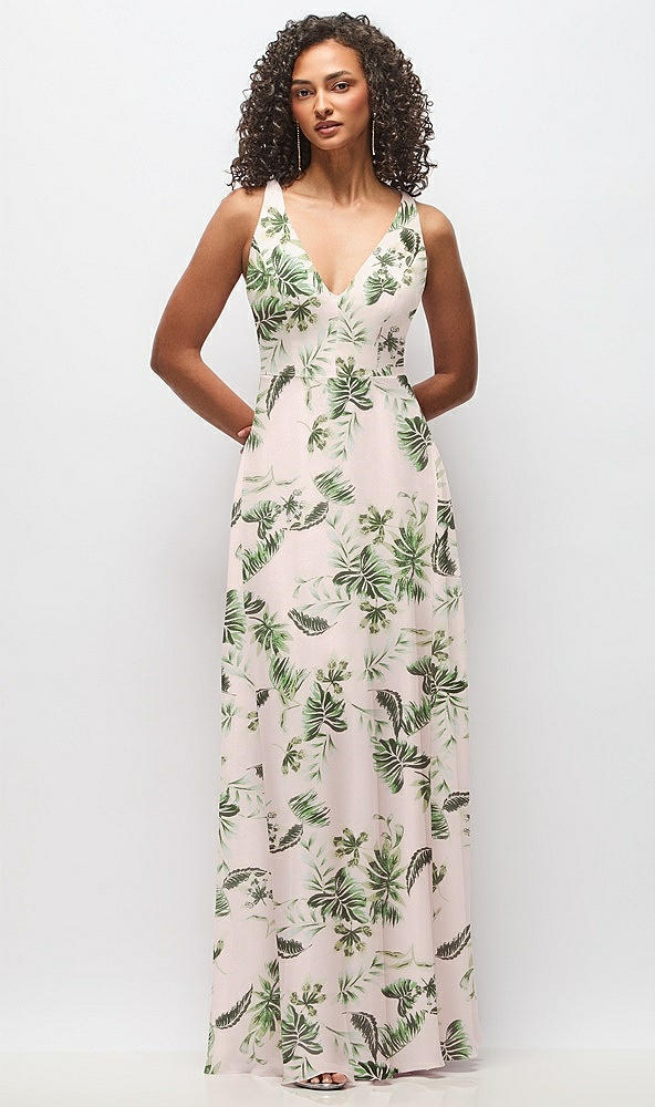 Deep V-Neck Chiffon Maxi Dress in Palm Beach Print