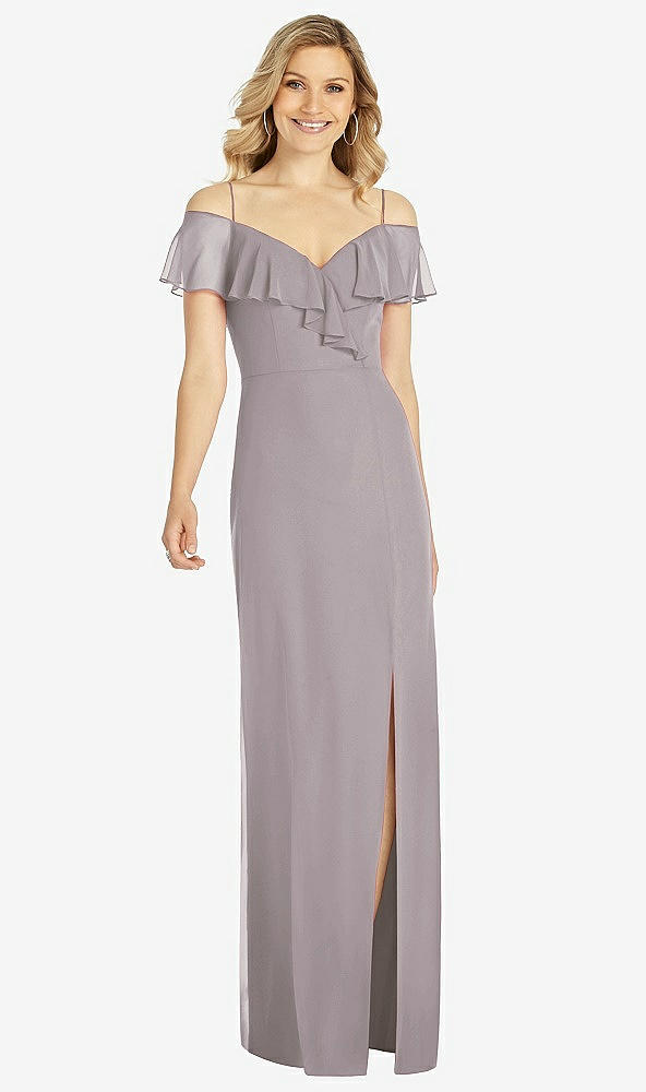 Ruffled Cold-Shoulder Maxi Dress in Cashmere Gray