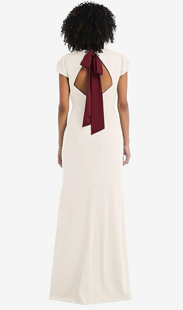 Puff Cap Sleeve Cutout Tie-Back Trumpet Gown in Ivory & Cabernet