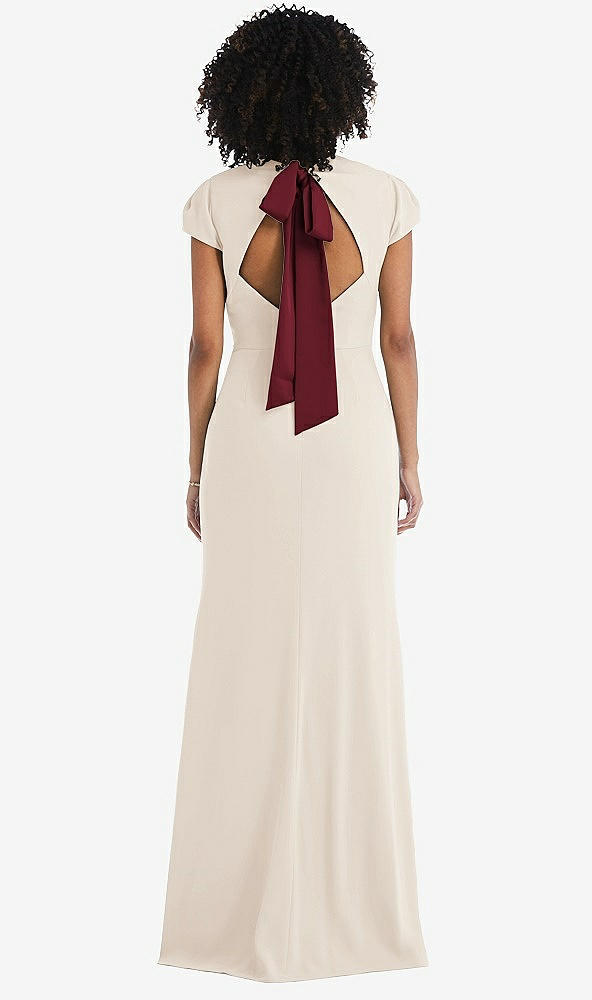 Puff Cap Sleeve Cutout Tie-Back Trumpet Gown in Oat & Cabernet