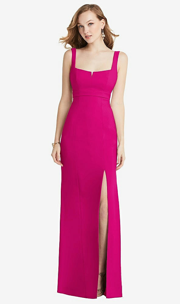Wide Strap Notch Empire Waist Dress with Front Slit in Think Pink