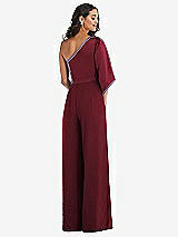 One-Shoulder Bell Sleeve Jumpsuit with Pockets in Cabernet & Desert Rose