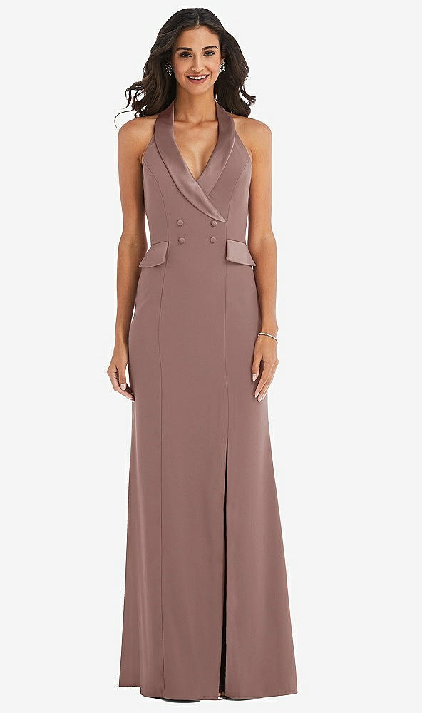 Halter Tuxedo Maxi Dress with Front Slit in Sienna