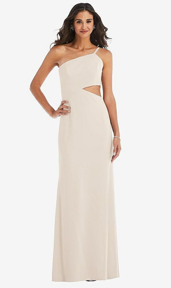 One-Shoulder Midriff Cutout Maxi Dress in Oat