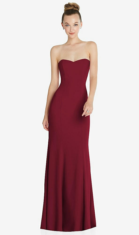 Strapless Princess Line Crepe Mermaid Gown in Burgundy