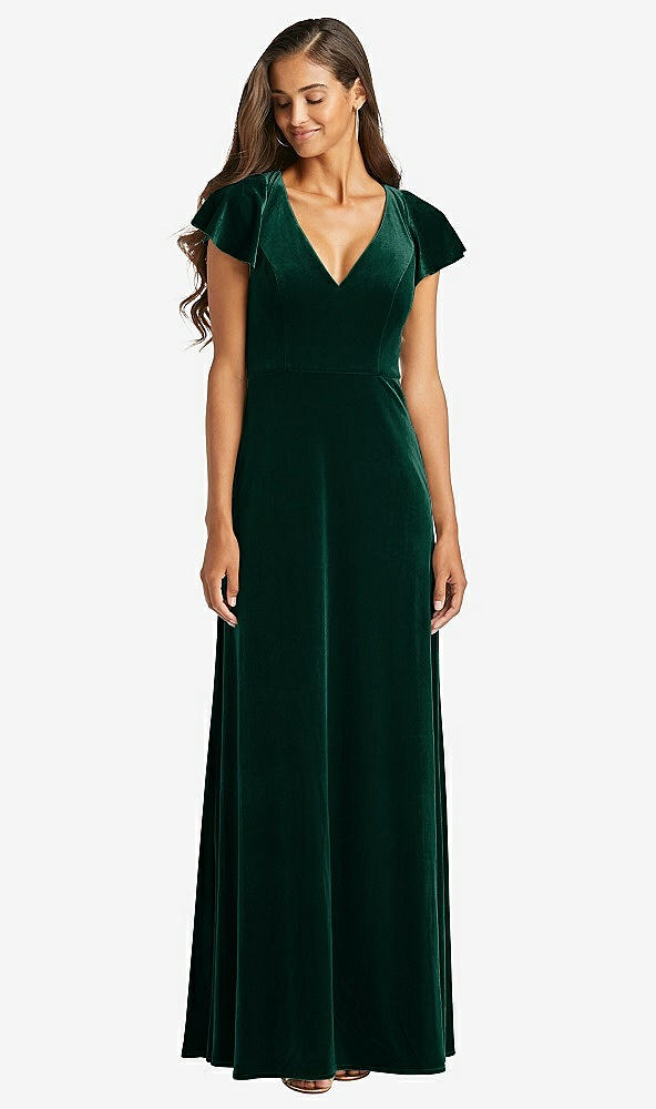 Flutter Sleeve Velvet Maxi Dress with Pockets in Evergreen