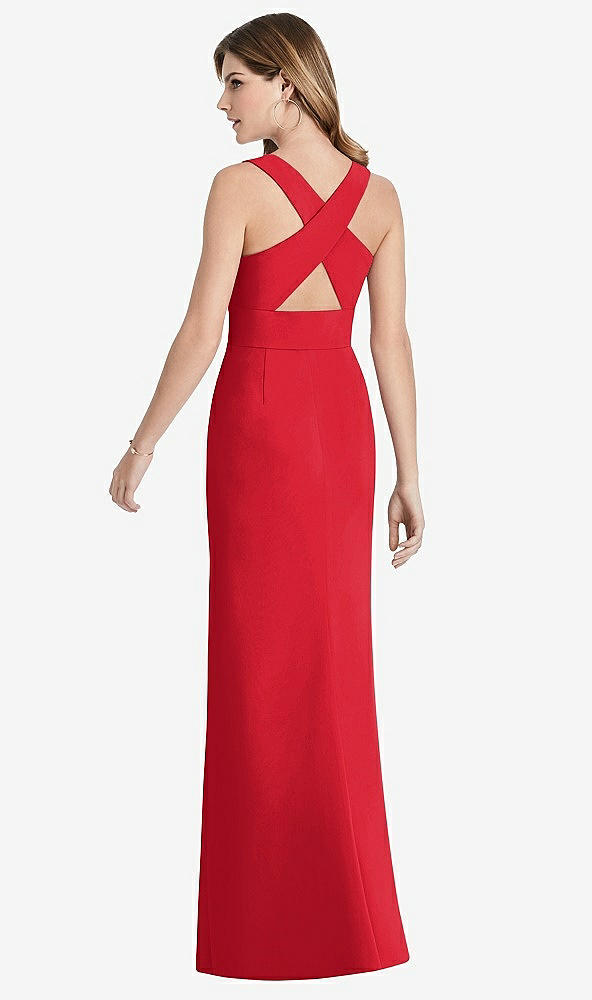 Criss Cross Back Trumpet Gown with Front Slit in Parisian Red