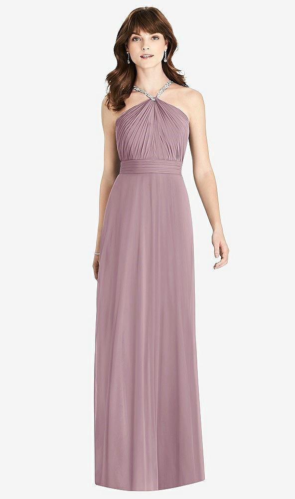 Jeweled Twist Halter Maxi Dress in Dusty Rose
