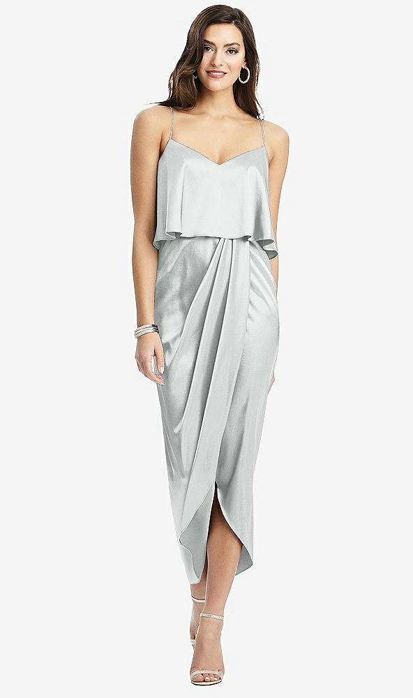 Popover Bodice Midi Dress with Draped Tulip Skirt in Sterling