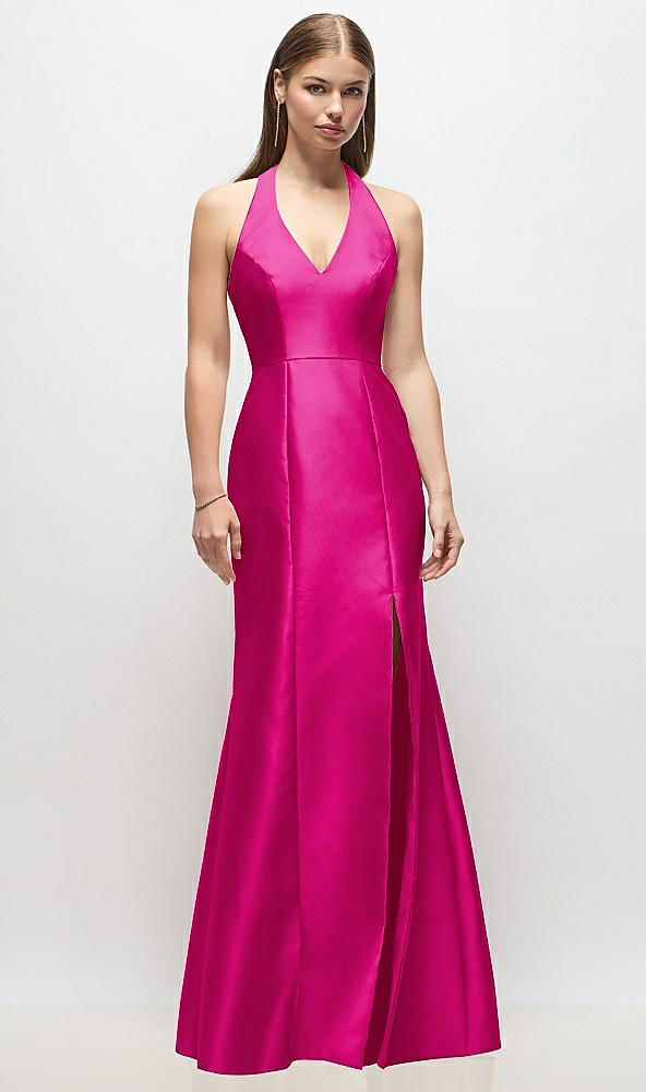 V-Neck Halter Satin Trumpet Gown in Think Pink