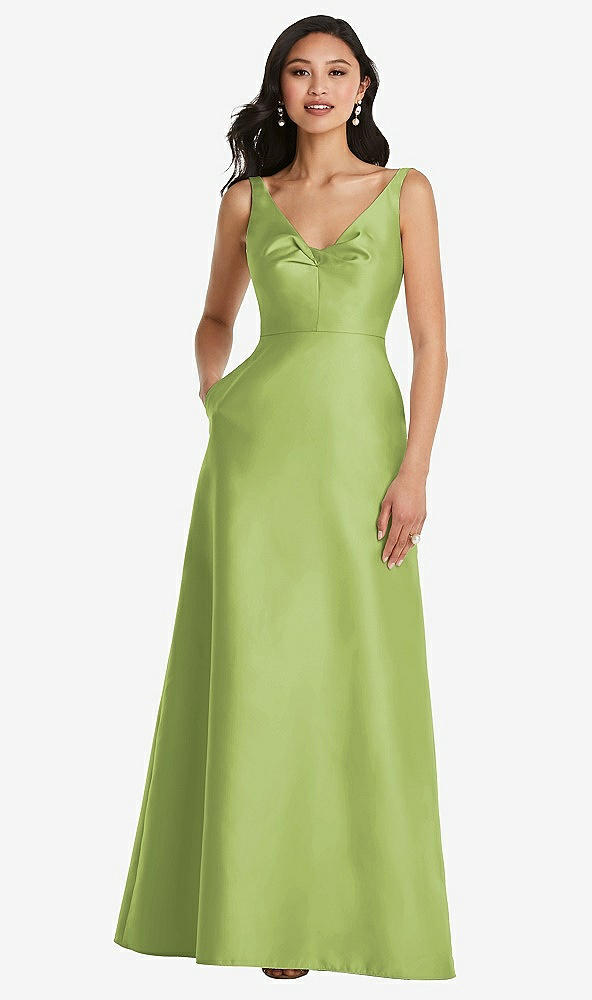 Pleated Bodice Open-Back Maxi Dress with Pockets in Mojito