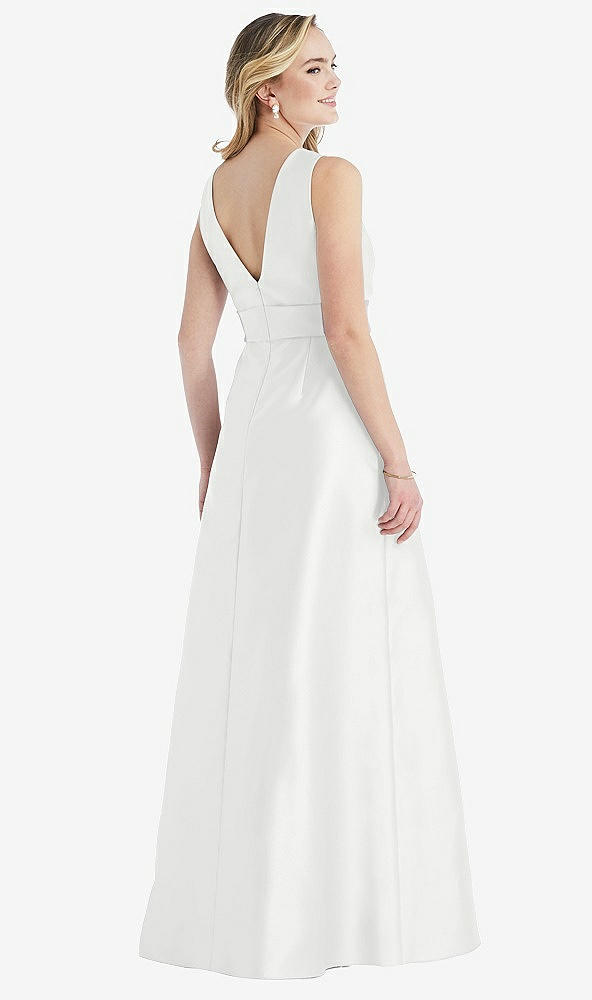 High-Neck Asymmetrical Shirred Satin Maxi Dress with Pockets in White & Mojito