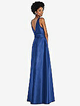 Jewel-Neck V-Back Maxi Dress with Mini Sash in Blush