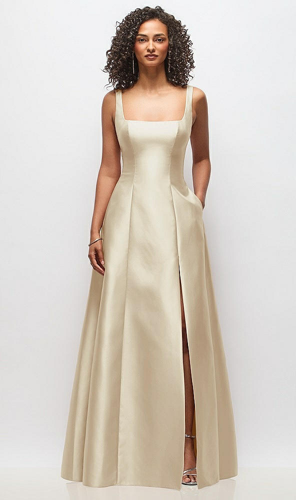Sleeveless Square-Neck Princess Line Gown with Pockets in Champagne