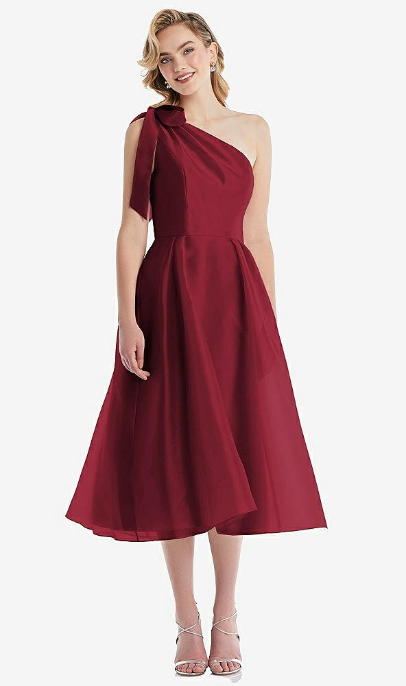 Scarf-Tie One-Shoulder Organdy Midi Dress in Claret