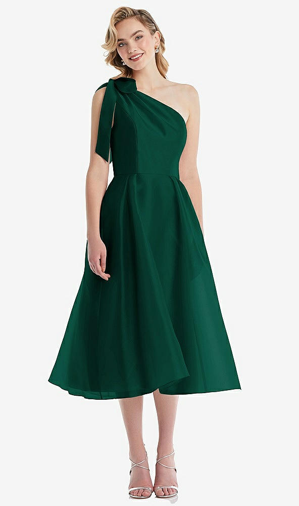 Scarf-Tie One-Shoulder Organdy Midi Dress in Hunter Green
