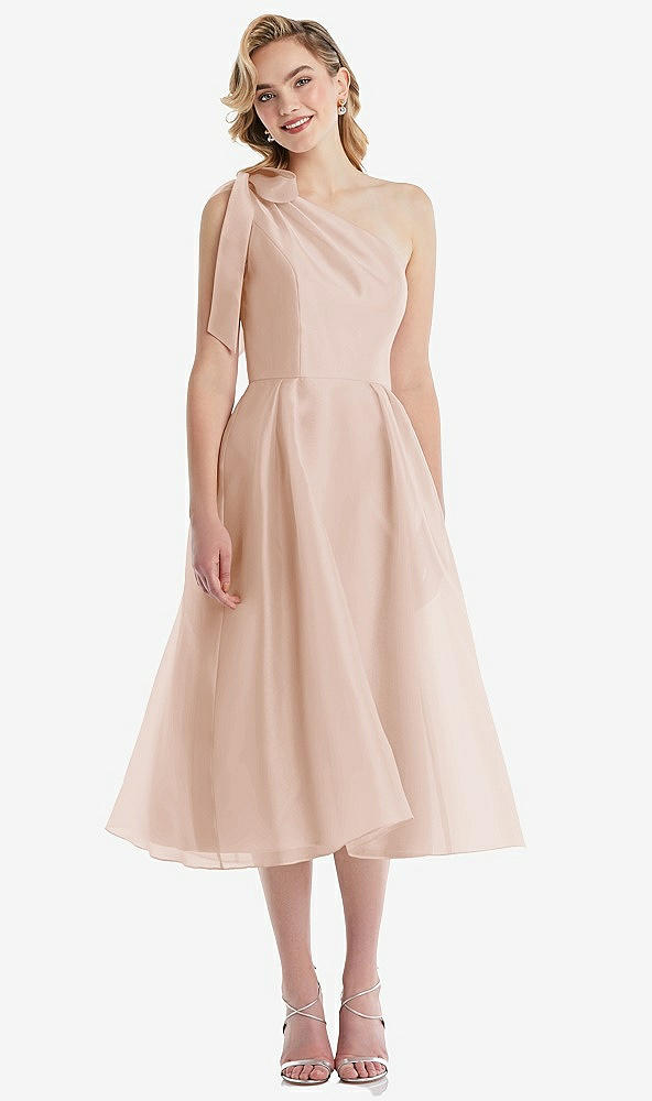 Scarf-Tie One-Shoulder Organdy Midi Dress in Cameo