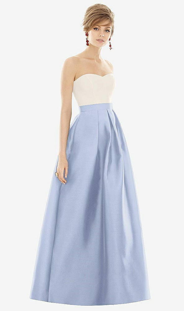 Strapless Pleated Skirt Maxi Dress with Pockets in Sky Blue & Ivory