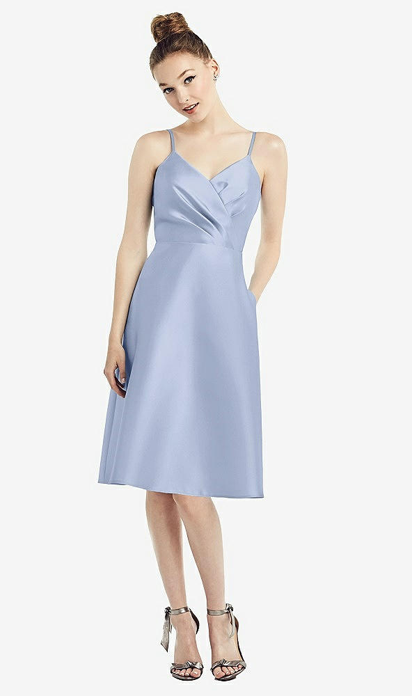 Draped Faux Wrap Cocktail Dress with Pockets in Sky Blue