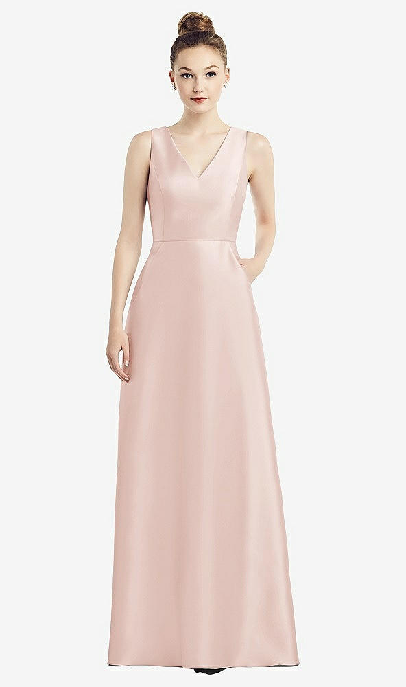 Sleeveless V-Neck Satin Dress with Pockets in Blush