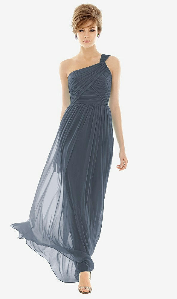 One Shoulder Assymetrical Draped Bodice Dress in Silverstone