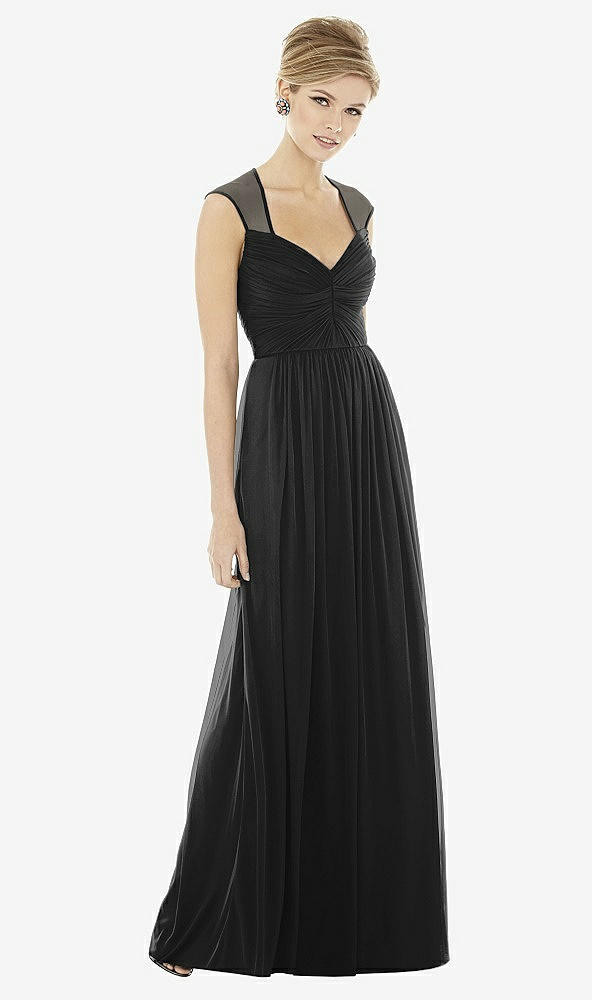 Delicately romantic with graceful cap sleeves, this chiffon knit dress is a study in elegance. The draped bodice is sweetly feminine while the sheer back adds an ethereal touch.